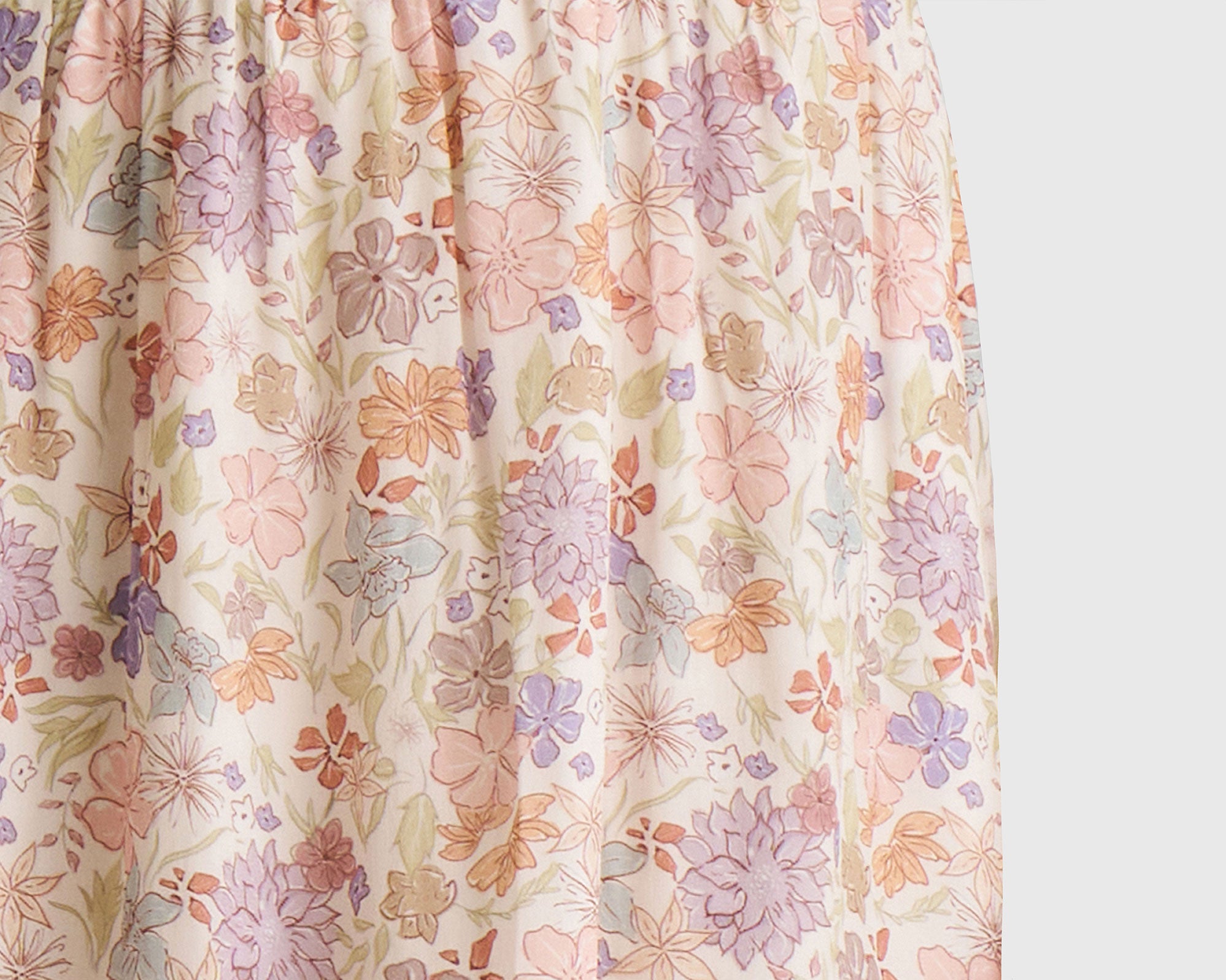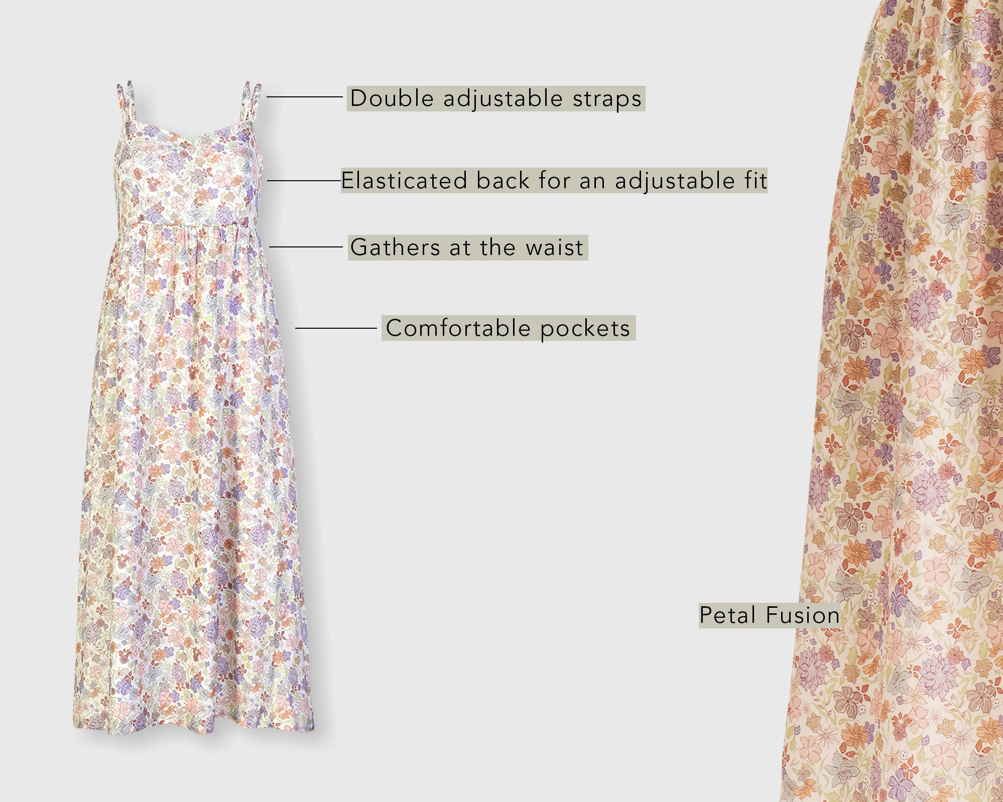 Fall in love with nature’s tapestry with this floral dress that features a feminine double strap and gathers at the waist.