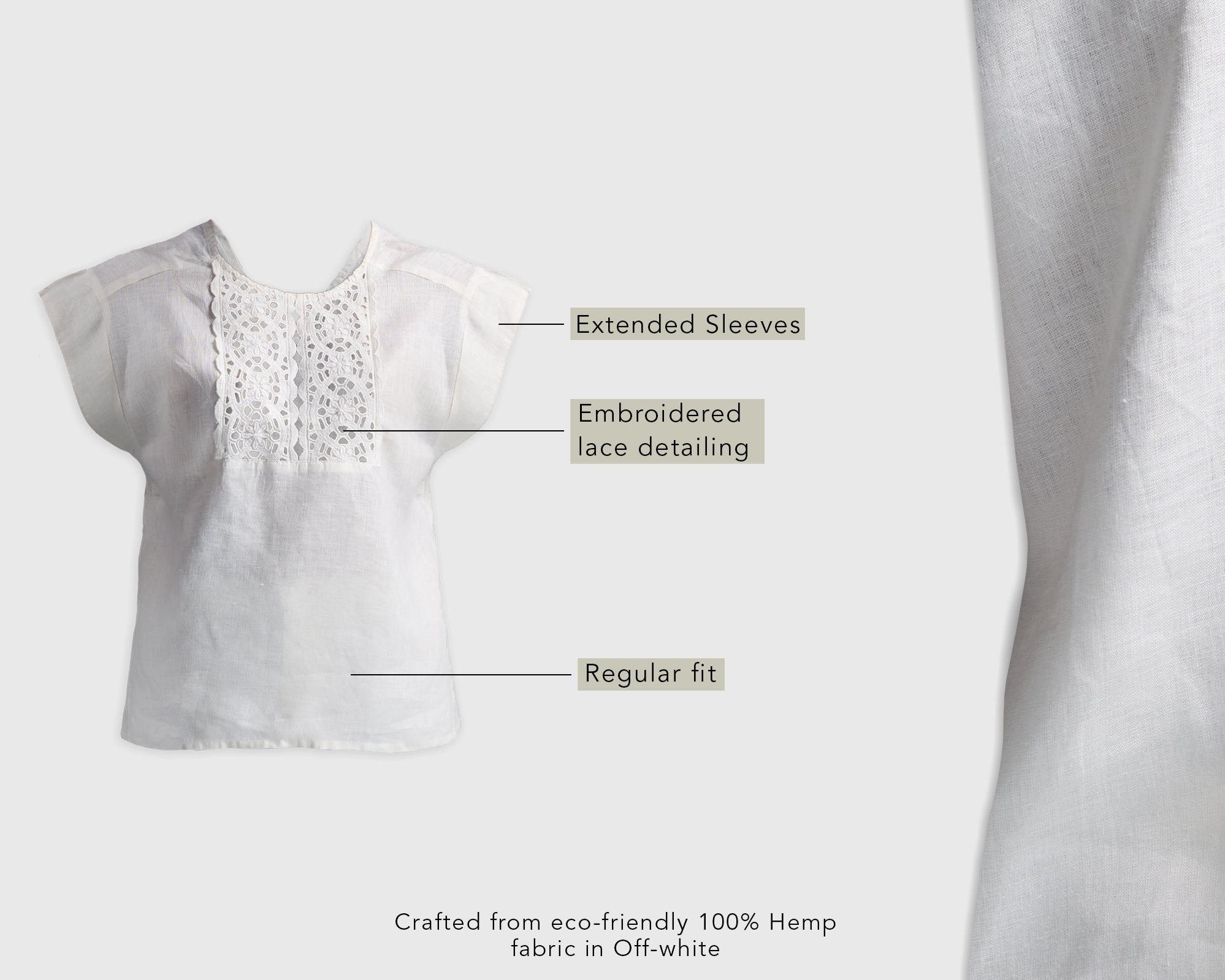 A great top for everyday style, this pretty off-white boxy top is made from 100% hemp. The lace detailing adds a pretty feminine twist to this classic top. It’s comfy, stylish, and eco-friendly - just perfect for work, play, and everything in between!