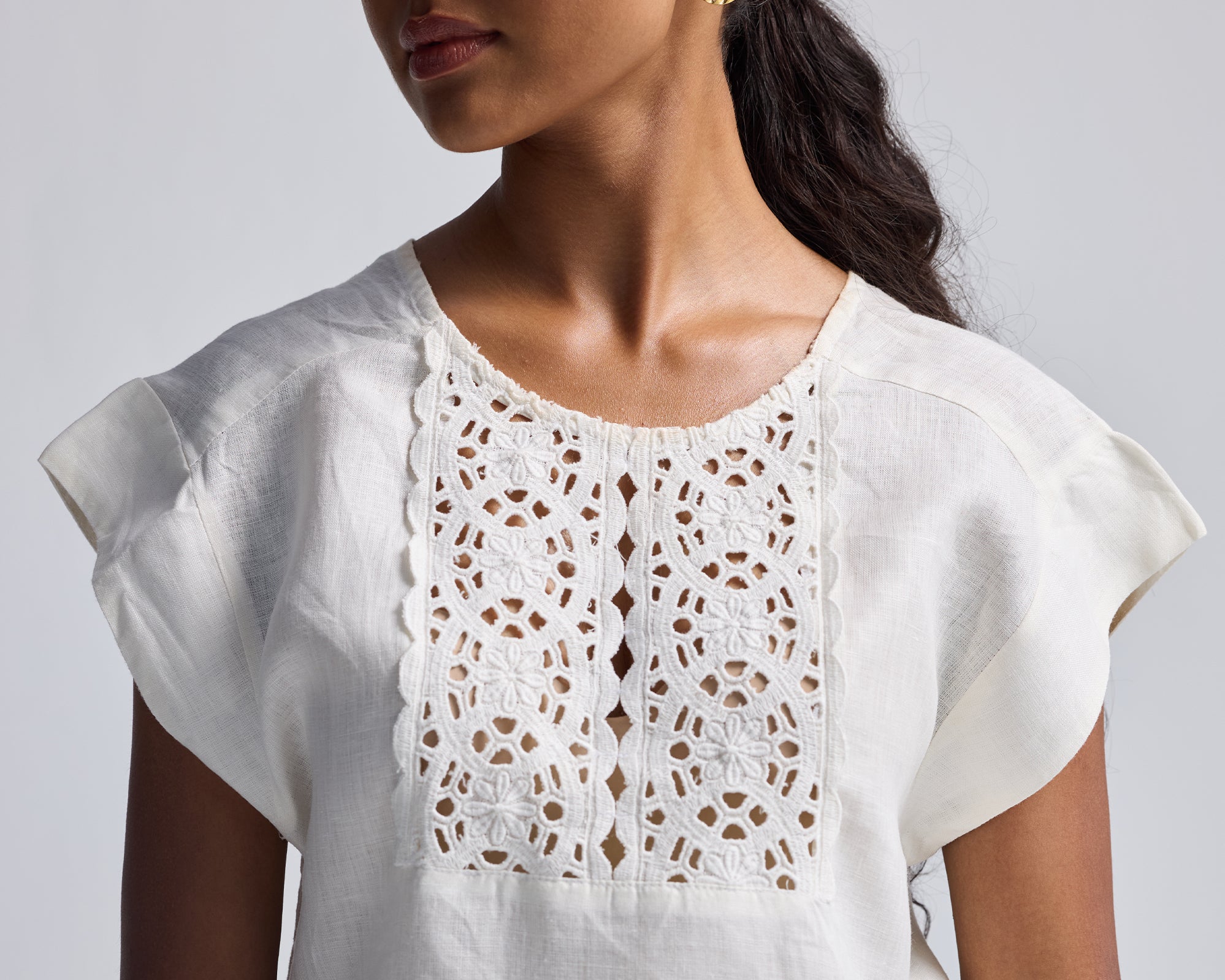 Boxy Top with Embroidered Lace Detail