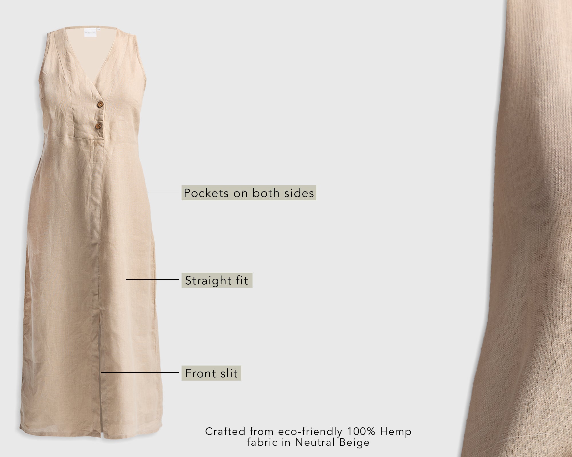 Straight Dress with Front Slit in Neutral Beige Hemp
