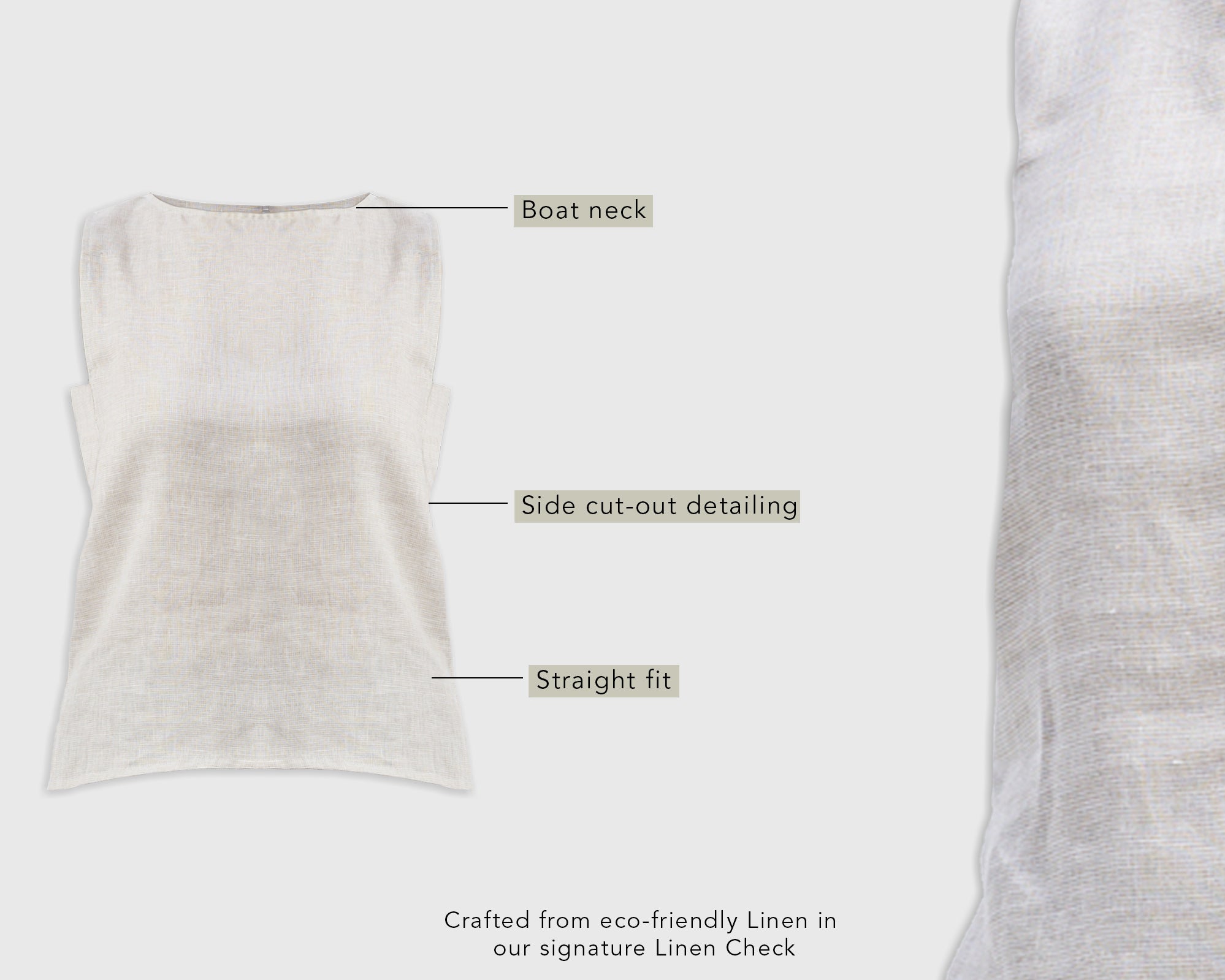 Boat Neck Top in Checkered Linen