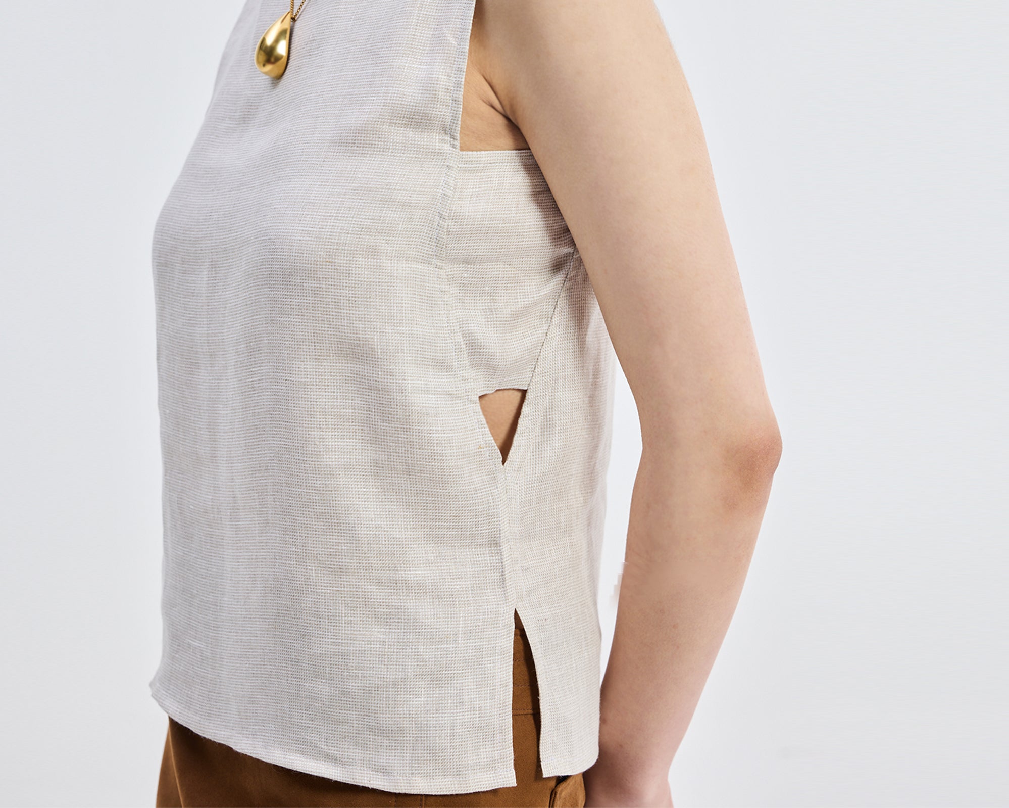 This timeless checkered linen shirt looks unusually chic with its pretty side cut-outs - the perfect blend of timelessness and modern style. Wear it solo or layer it for endless outfit possibilities - this versatile top is ready for any look you choose to create!