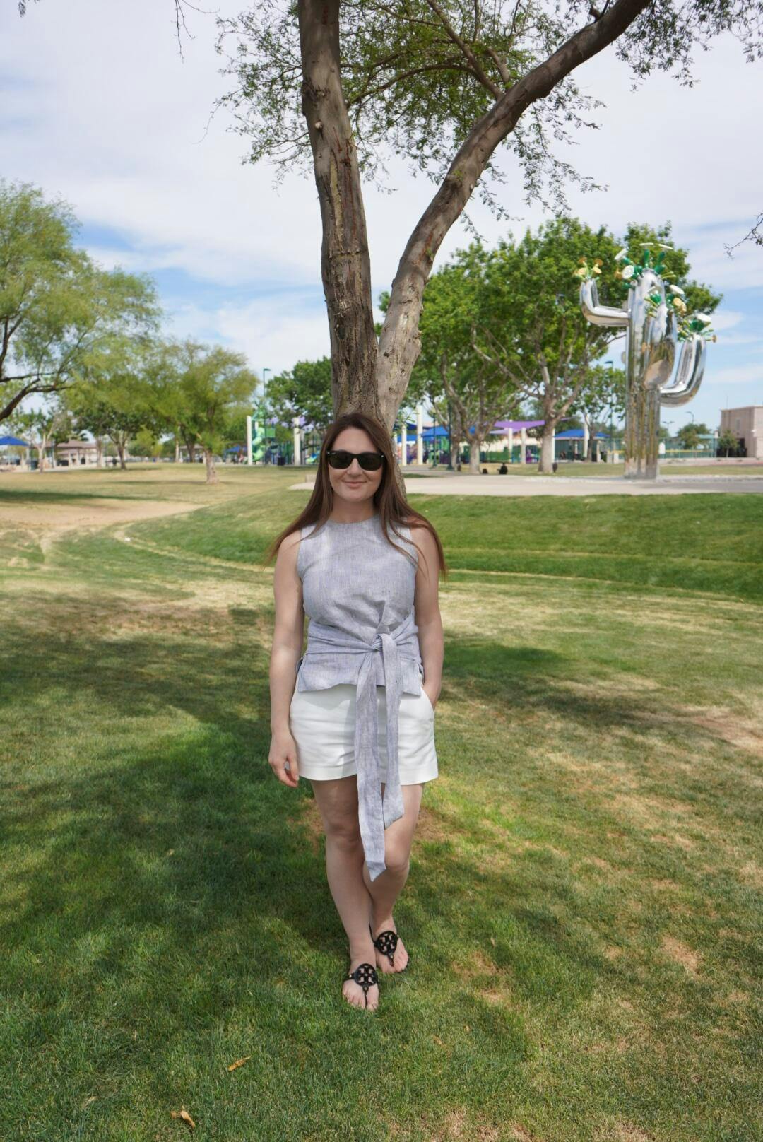 Your everyday elevated staple front-tie top is as versatile and stylish as it gets. Its design is perfect for warm summer days, and it works as well for the office as it does for a dinner with friends. Pair it with comfy shorts, a sleek trousers or a pair of jeans and see where your day takes you!