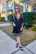 A classy and sophisticated dress, this cotton outfit features eye-catching embroidery and a deep v-neck.