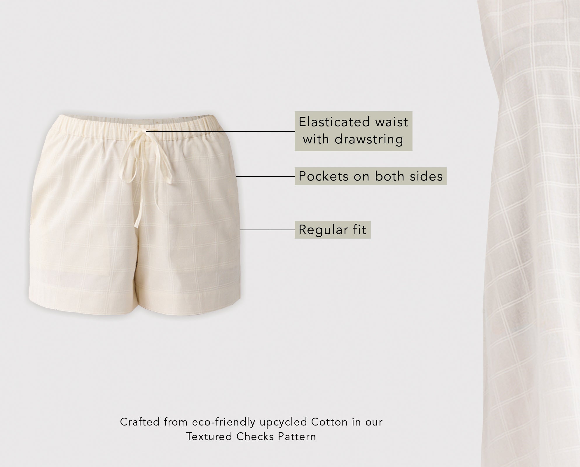 These regular fit shorts are crafted from breathable textured cotton that feels light and comfortable. With a classic silhouette and an elasticated drawstring waist, these shorts slip on effortlessly for relaxed vacation days, poolside lounging, or as a stylish beach cover-up.