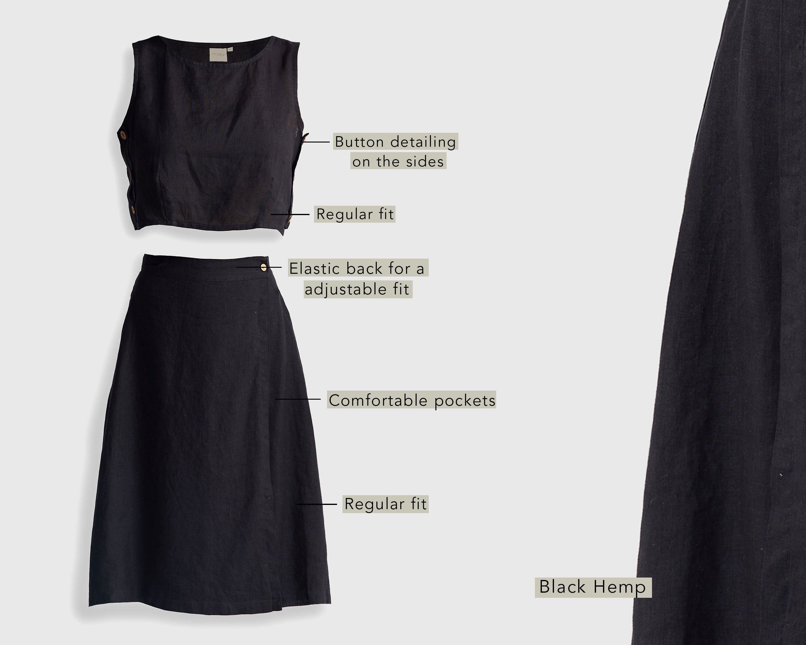 Includes - Boxy Crop Top in Black and Overlap Midi Skirt in Black