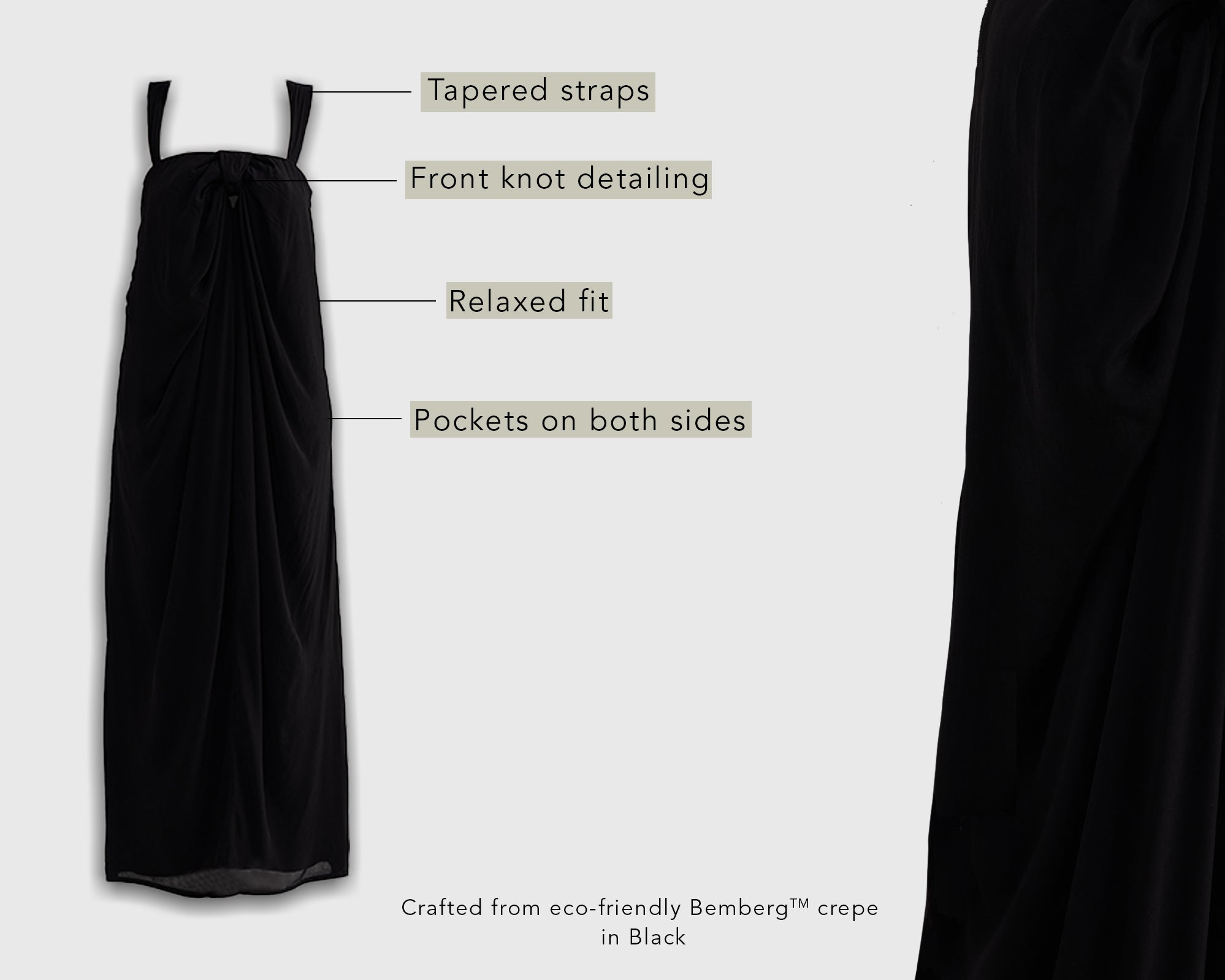 This unique maxi, with its effortlessly chic look and tapered straps, will have you looking and also feeling great at parties, dinner dates, and even casual gatherings. This drapey eco-friendly fabric falls beautifully against your body, creating a flattering silhouette that stands out effortlessly.