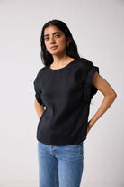 This one’s an everyday wardrobe staple, a classic black top (with an edge!) you’ll keep wearing on repeat. Made from 100% hemp fabric, it’s breathable, lightweight, and consciously crafted with great care and intention. The relaxed fit with elasticated sleeves make this top a good choice for everyday wear, while the timeless silhouette keeps you stylish and comfy all day.