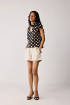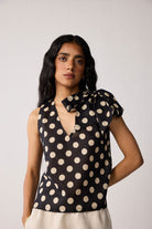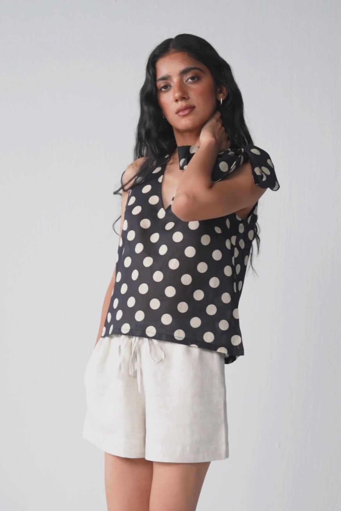 Here’s a stylish, comfy, easy polka dot top with a timeless feel. Made from 100% cotton, it’s soft, breathable, and perfect for all-day wear. The classic print, V-neck, and playful tie-up straps (which you can tie as you like) add just the right charm, making this piece easy to style for everyday plans, weekends, travel, or casual get-togethers.
