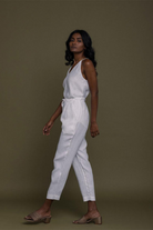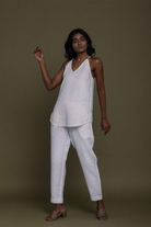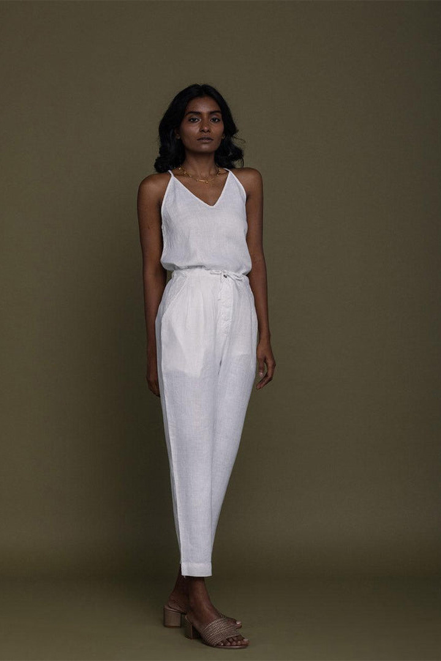 With a drawstring waist and a discrete button fly, these straight-leg tapered pants with a high waist have a relaxed semi-fitted look.