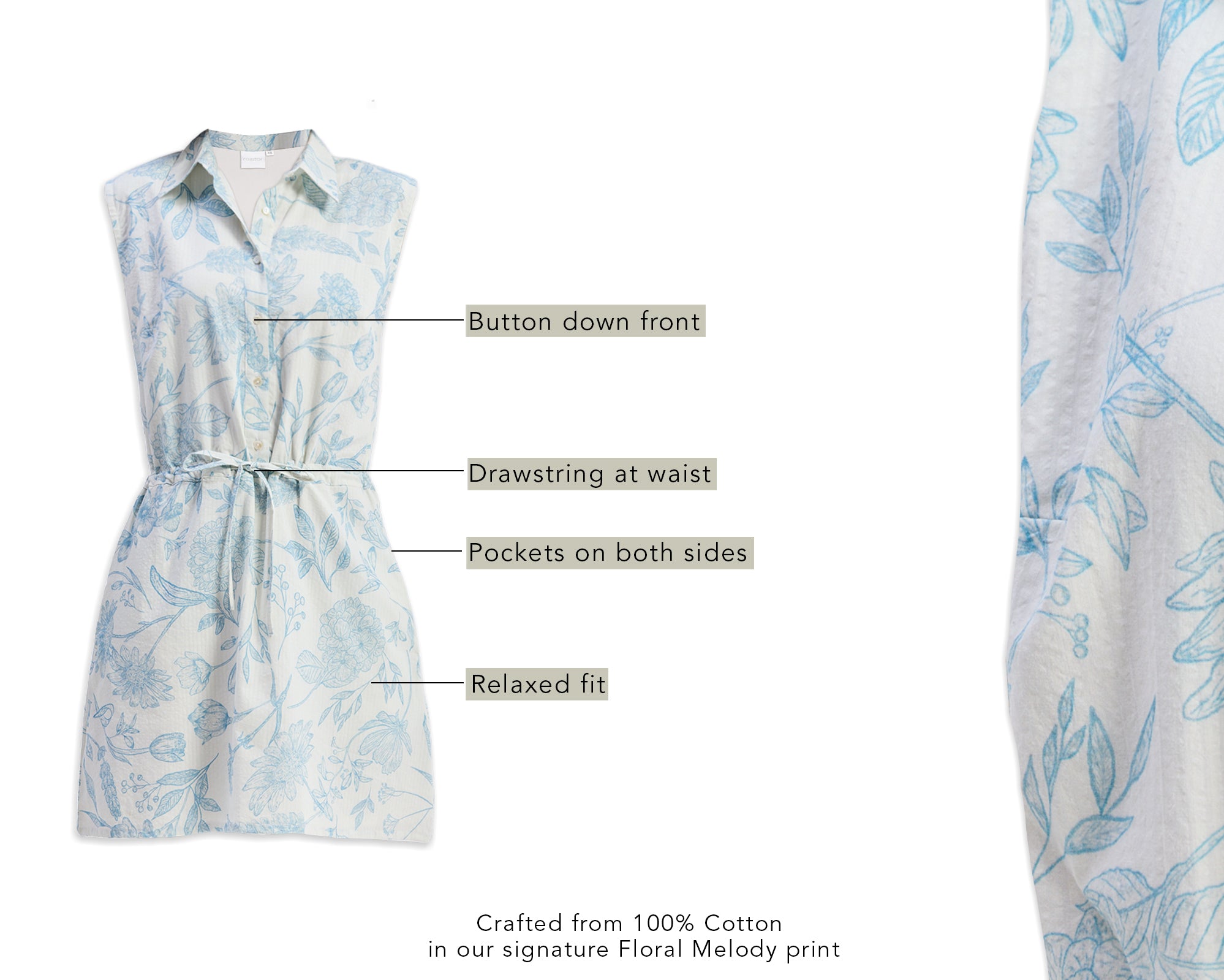 This relaxed-fit dress, crafted from 100% cotton for that absolute breathable comfort and unmatched style. Featuring a button-down front, a flattering drawstring waist, and practical pockets on both sides, it’s designed for versatility. Perfect for vacation, casual outings, or just lounging around - this timeless piece is your go-to for any occasion!