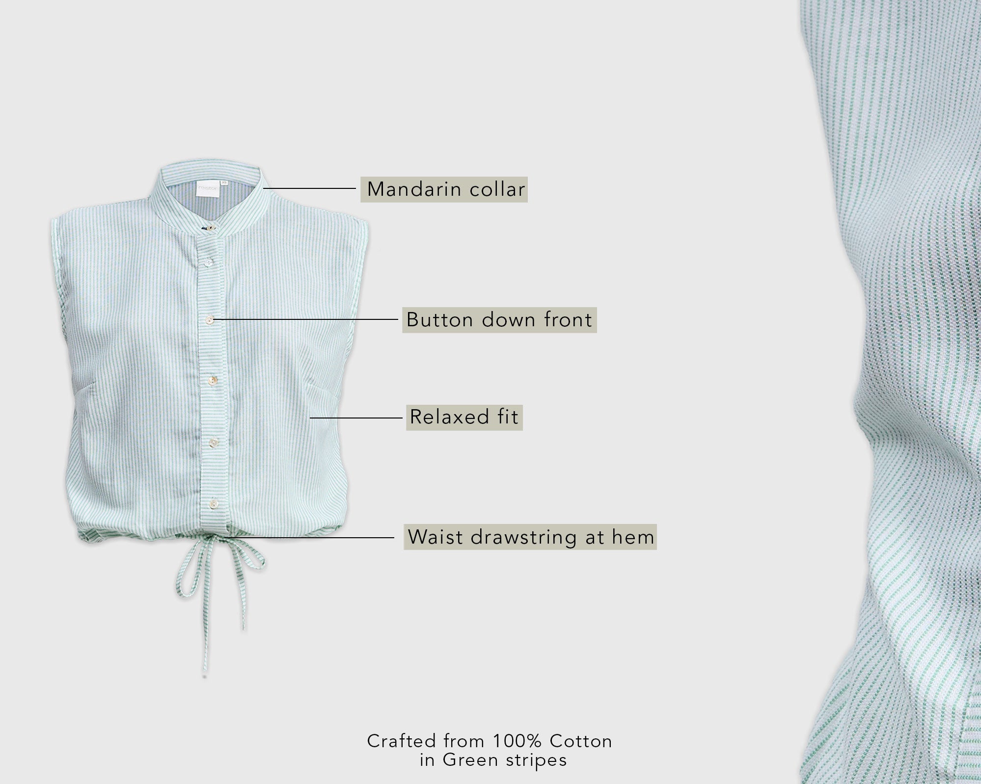 This striped, relaxed-fit top features a mandarin collar and a drawstring hem, offering a stylish yet comfortable fit. Made from 100% cotton, it’s perfect for vacation, or everyday lounging. The breathable fabric and timeless design make it easy to style for your everyday.