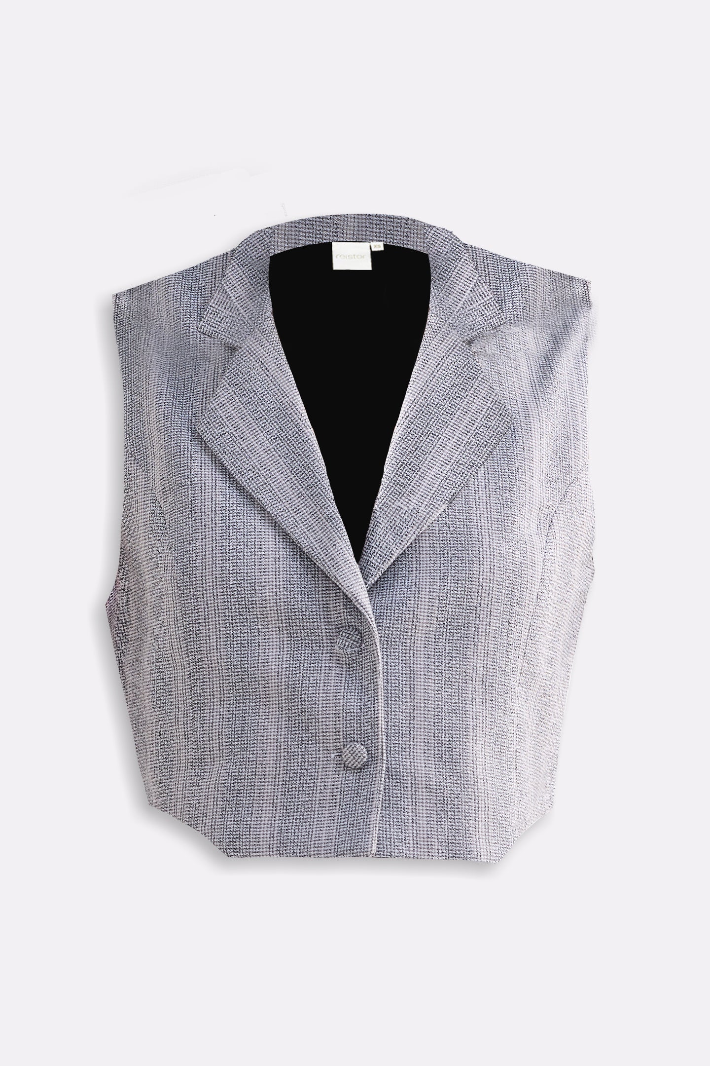 This cropped vest is consciously crafted for a tailored yet comfortable fit that enhances your silhouette. With its button-down notched collar look, this vest is perfect for both layering or wearing on its own. It is made from the softest eco-friendly cotton tweed that helps you dress the part no matter where your day takes you.