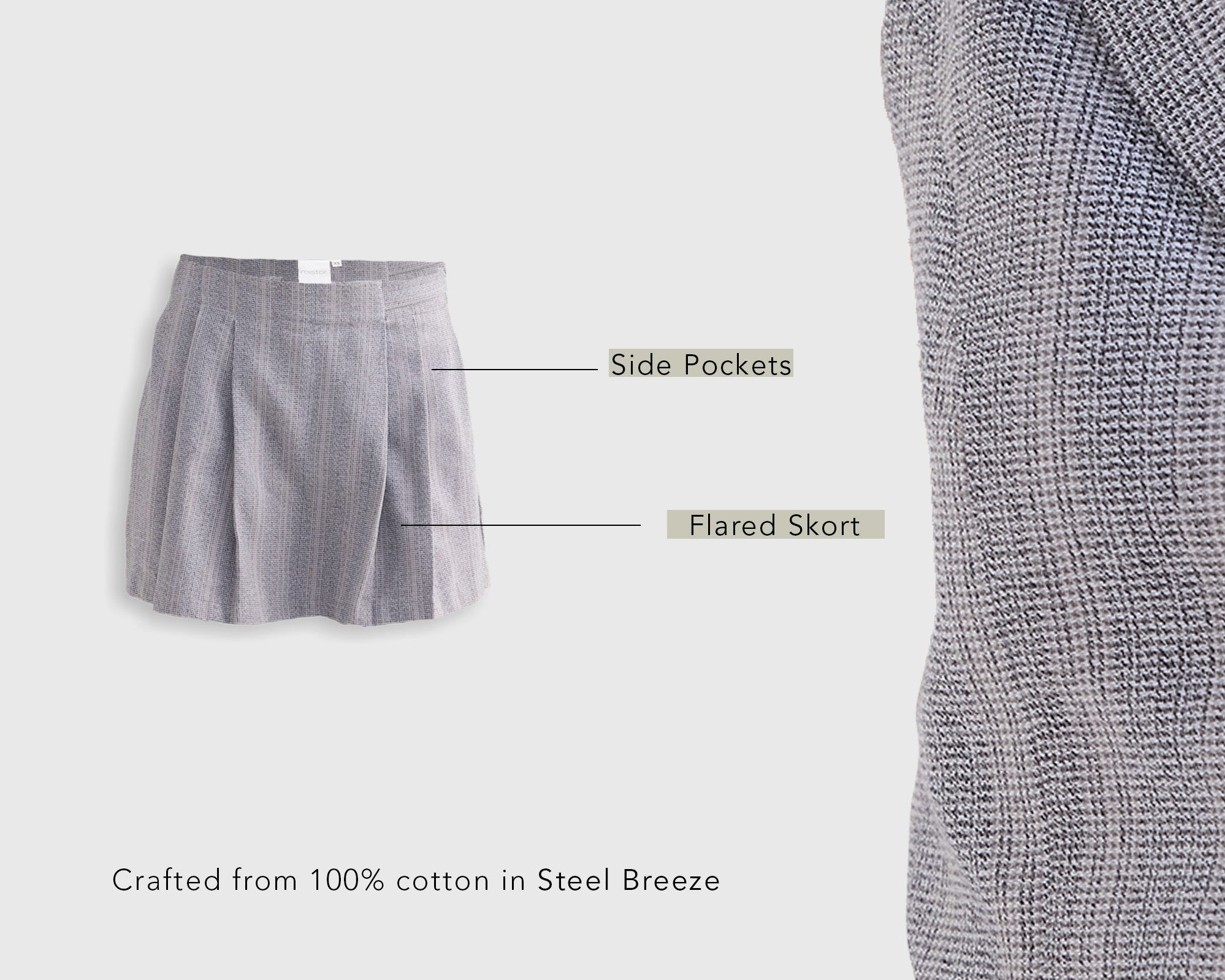 We love how easy-to-wear this stylish skort is! Pair this with one of our tweed jackets or tuck in a t-shirt and get going. The pleated front look and the side pockets make this pair of skorts a perfect addition to your fall wardrobe! Pair with our Cropped Cotton Tweed Vest for an instantly cohesive and effortlessly stylish look.