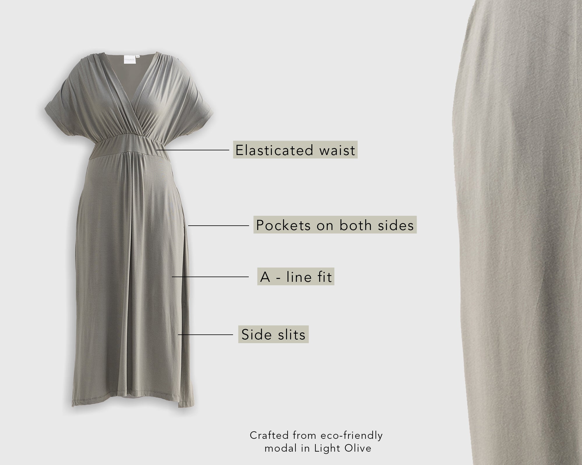 Flowy A-Line Maxi Dress with Side Slits in Light Olive