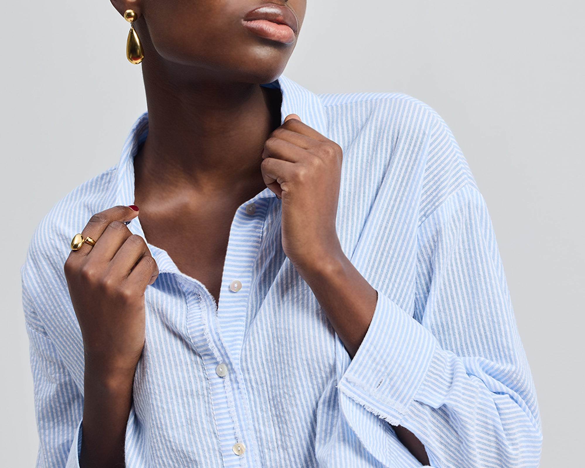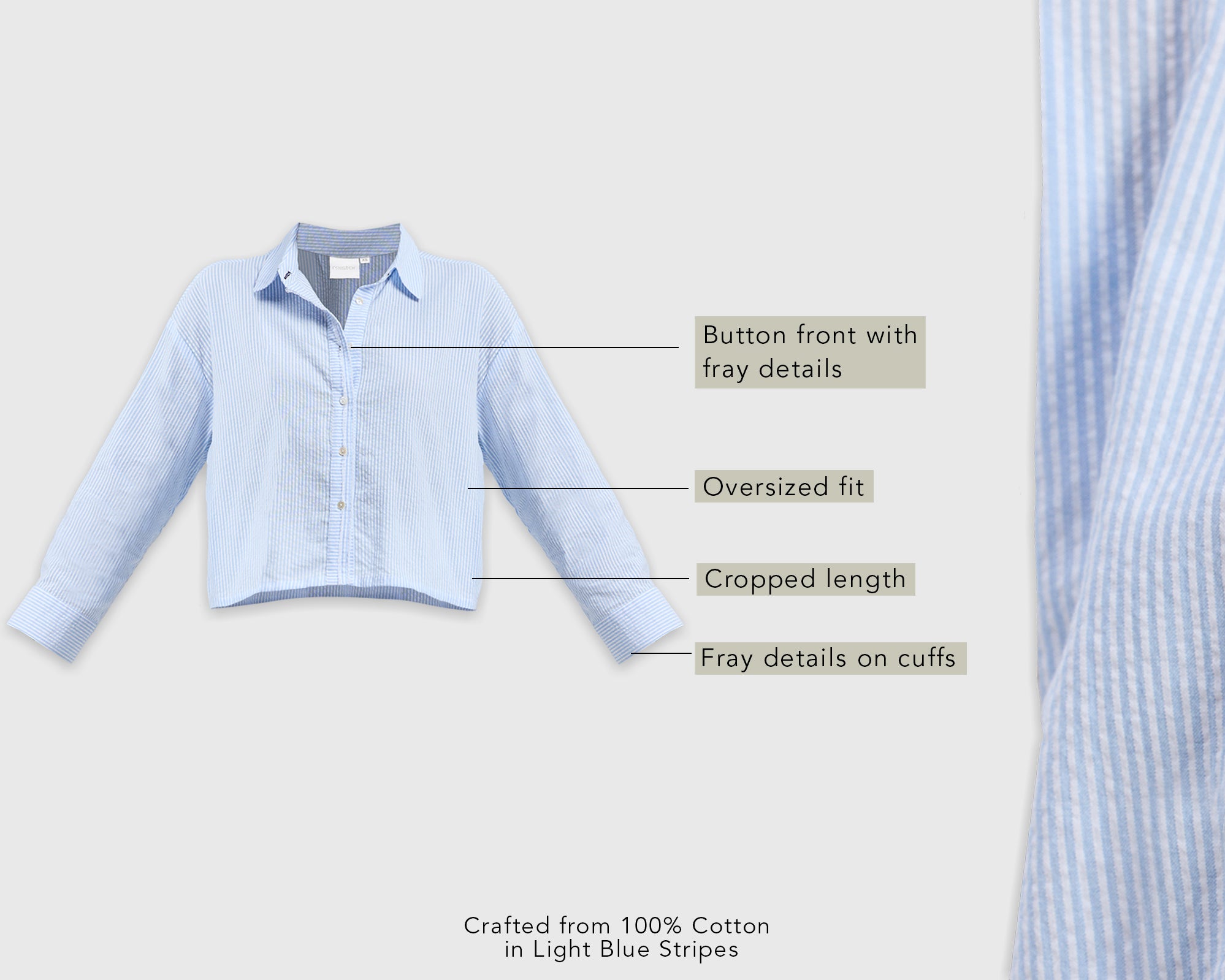 Playful and fresh, this 100% cotton crop shirt in stripes is your go-to crisp and classic piece. It’s stylish, classic, breathable, eco-friendly, and endlessly versatile - perfect for days when you want to keep it simple yet stylish.