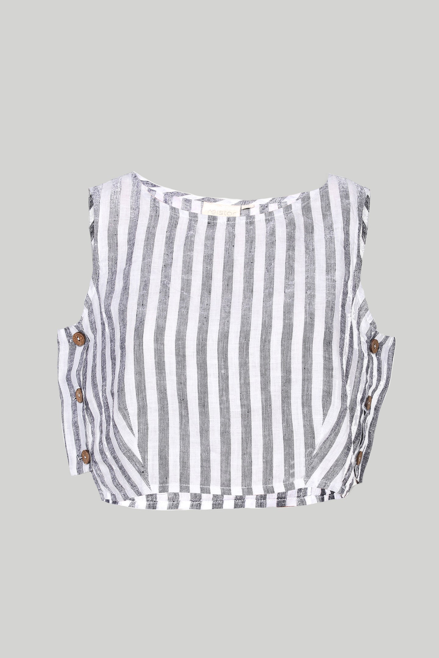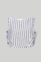 A welcome addition to your wardrobe, this boxy crop top in linen stripes with a side panel and round neck is easy to wear and matches with anything you pair it with.