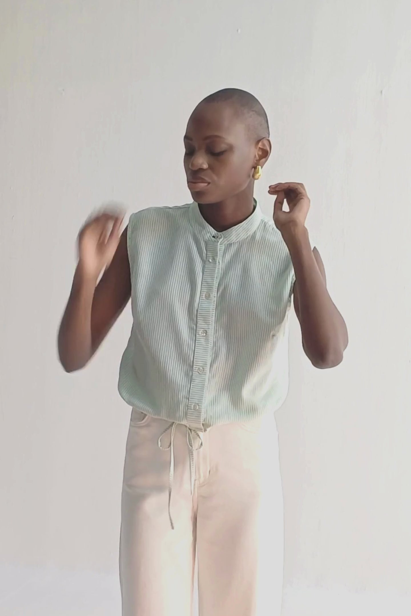 This striped, relaxed-fit top features a mandarin collar and a drawstring hem, offering a stylish yet comfortable fit. Made from 100% cotton, it’s perfect for vacation, or everyday lounging. The breathable fabric and timeless design make it easy to style for your everyday.