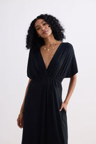 Once you try on this flowy maxi dress, you might never want to take it off! Made from an eco-friendly modal fabric, this classic black piece feels like butter against your skin and looks as good as silk.