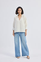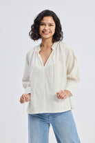 This go-to cream top features long sleeves, cuffed detailing, and a front tie, crafted from 100% textured cotton for a comfy, breathable fit. Versatile enough for casual outings, vacation, or even a laid-back party, it’s a timeless, must-have addition to your wardrobe.