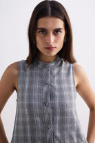 Effortlessly elevate your wardrobe with our sophisticated shift dress in cotton tweed, a timeless piece designed to bring a touch of nostalgia and charm to any occasion. The gentle A-line finish of this button-down dress and its side pockets, coupled with the delicate detailing across the waistline is just what you need to stylishly make it through your day.