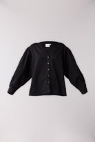 Embroidered Shirt with Long Balloon Sleeves in Black