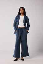 Easy, timeless, and made for everyday wear. These wide-leg drawstring pants come in classic dark blue stripes and feel soft, breathable, and comfy with just a hint of stretch. The elasticated waist, adjustable drawstring, and side pockets make these pants ideal for all-day wear and the chic, sophisticated silhouette works best for casual days or slightly dressed-up plans.