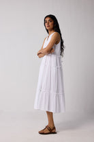 This white resort dress (with pockets!) is intentionally designed to bring style, comfort, and ease to your vacation wardrobe. The soft cotton fabric stays light, breathable, and comfy giving you a flattering, easy look. The regular fit, mandarin collar, and in-cut sleeves give a classic, sophisticated touch, while the tiered ruffle detailing adds flow. Perfect for your next weekend getaway!